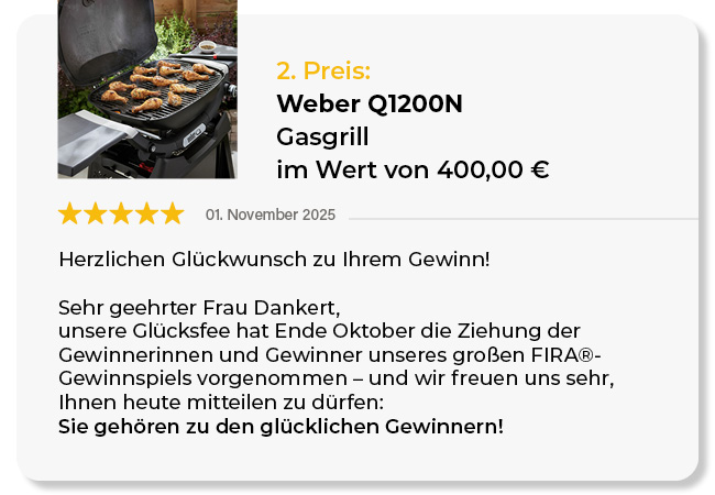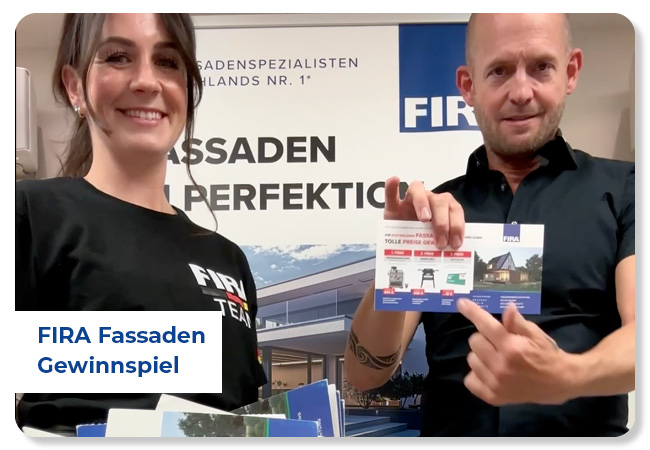 Die im Rahmen des Gewinnspiels erhobenen personenbezogenen Daten werden ausschließlich zur Durchführung des Gewinnspiels verwendet und nicht an Dritte weitergegeben. Weitere Informationen finden Sie in unserer [Datenschutzerklärung]- www.fira-fassaden.de